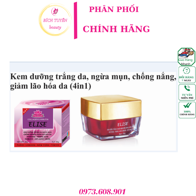 - - KEM ELISE DƯỠNG TRẮNG DA, NGỪA MỤN, CHỐNG NẮNG & GIẢM LÃO HÓA 4 in 1 20G.