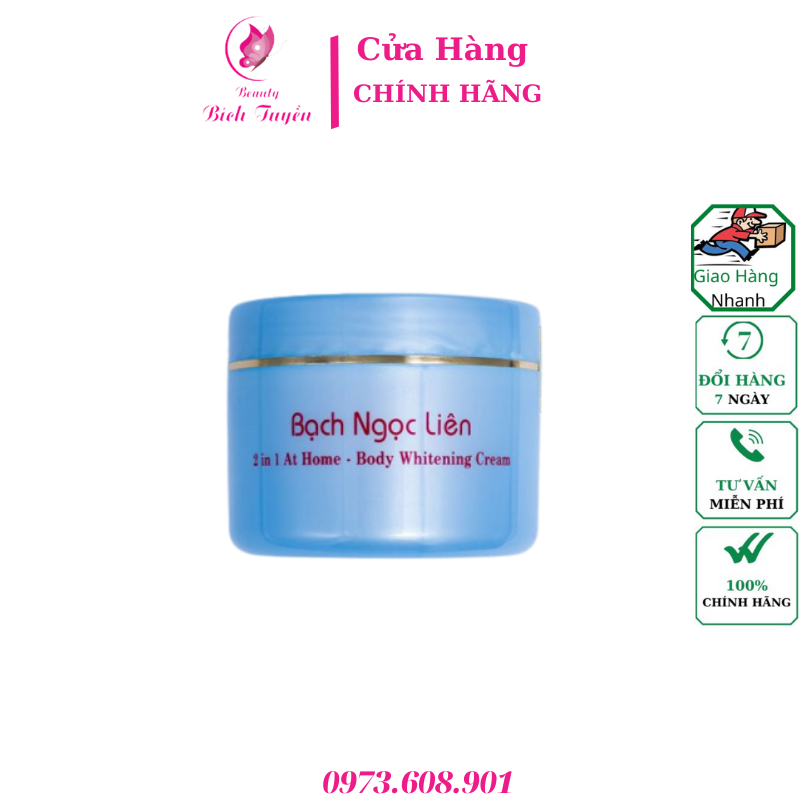 Body Whitening Cream Bạch Ngọc Liên với công thức vượt trội trong công thức làm đẹp da body thế hệ mới, chiết xuất từ những dưỡng chất có trong tinh chất sữa mẹ, Tinh dầu Cám gạo, và các hoạt chất trắng da thế hệ mới như Vitamin B3, Arbutin… Sẽ tác động sâu vào trong từng tế bào da đen sạm đốm nâu … khi tác động trực tiếp lên da sẽ dần dần trắng sáng lên rõ rệt.