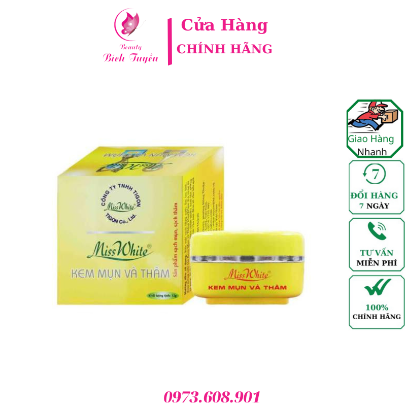 Rửa mặt sạch bằng nước ấm lau khô, sau đó thoa một lớp Kem Mụn Và Thâm MissWhite vừa đủ lên vùng da bị mụn, bị thâm ngày 2 lần.