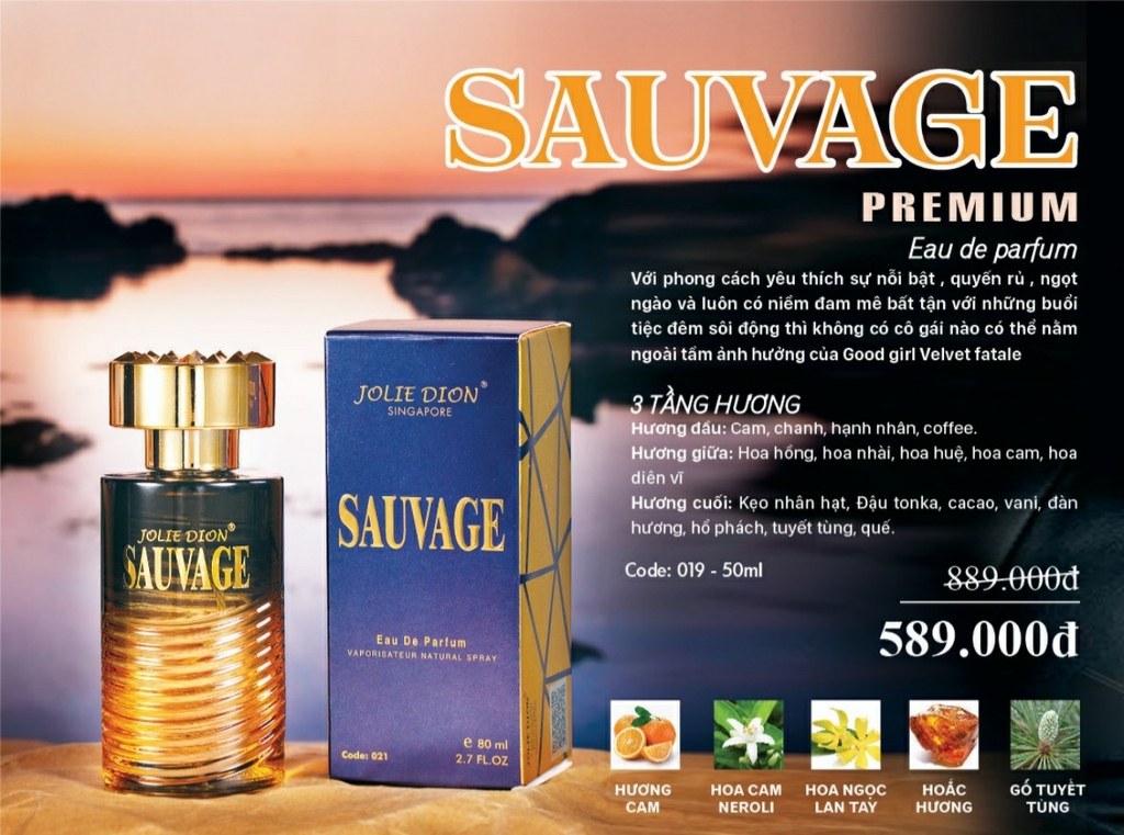 - Kế đến là sự kết hợp hài hoà giữa hương đậu Toka và gỗ Đàn hương , vani xanh mềm được thu hái và ngâm trong nước nóng , chiết xuất bằng một phương pháp sáng tạo cho phép giữ được hương thơm đa tầng , phong phú....SAUVAGE JOLIE DION: giống phiên bản gốc đến 99% , lưu hương trên 8 tiếng ....., với trải nghiệm mới SAUVAGE JOLIE DION sẽ giúp bạn tiết kiệm lên tới 2,800,000/ 1 chai 👍👍🌹💥