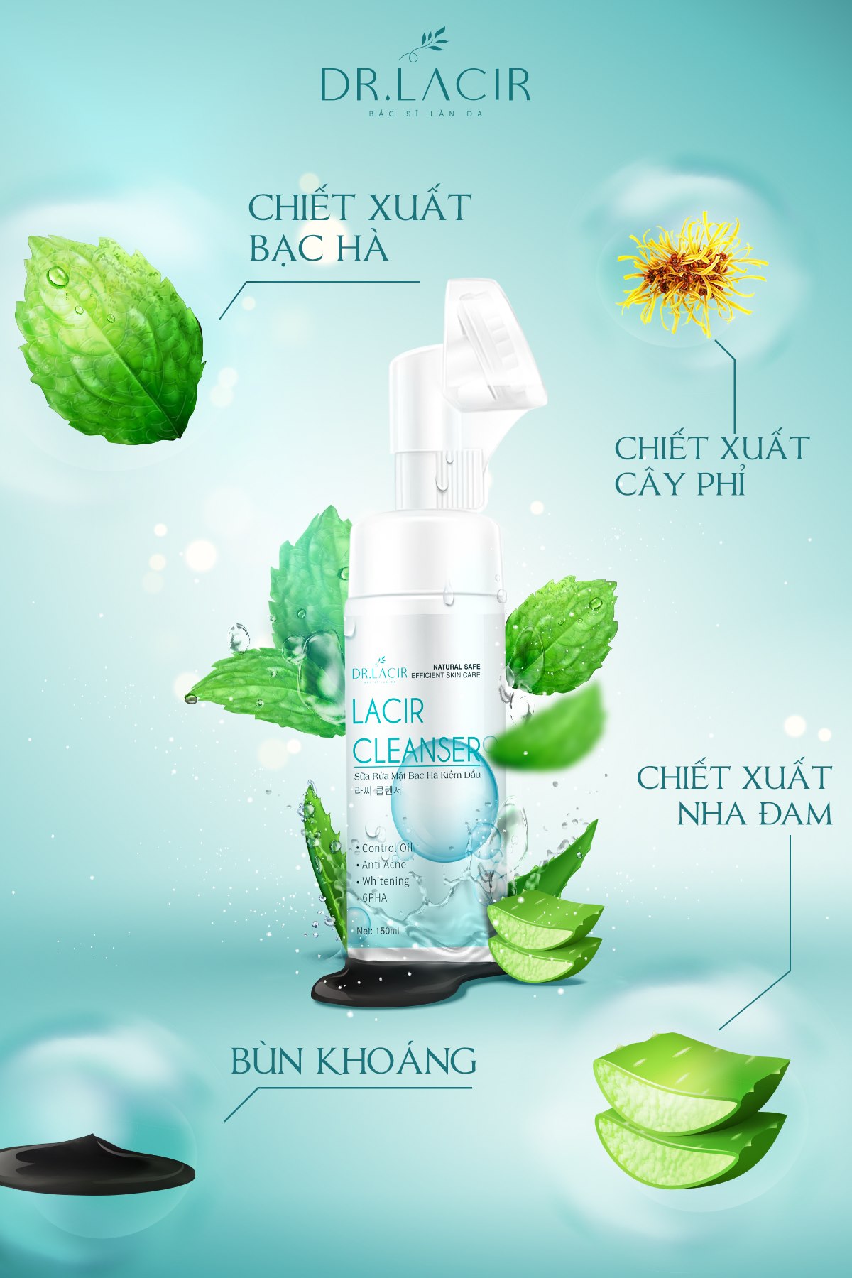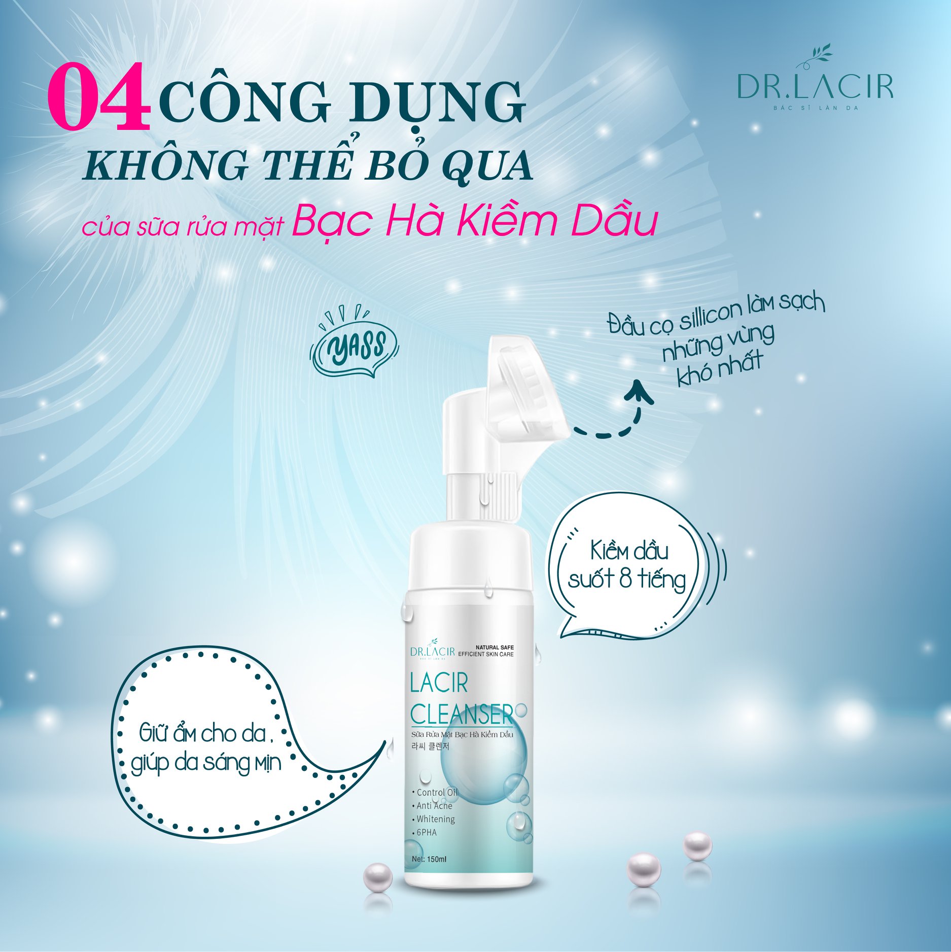 - Sữa rửa mặt bạc hà kiềm dầu Lacir Cleanser: Thích hợp với da dầu, da dễ bị mụn, da hỗn hợp.
