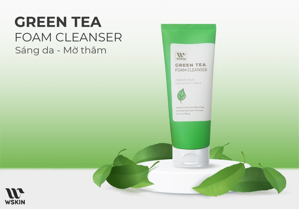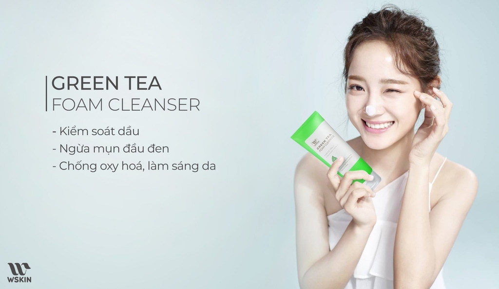 Sữa rửa mặt trà xanh WSKIN Green Tea Foam Cleanser chứa chiết xuất từ lá trà xanh tự nhiên, giàu có chất chống oxy hoá, giúp làm sạch bụi bẩn và các tạp chất trên da, hút nhờn và ngăn ngừa những dấu hiệu làm lão hoá da. Đặc biệt phù hợp với da dầu và lỗ chân lông to. Đây là sản phẩm sữa rửa mặt mới nhất của WSKIN Korea.